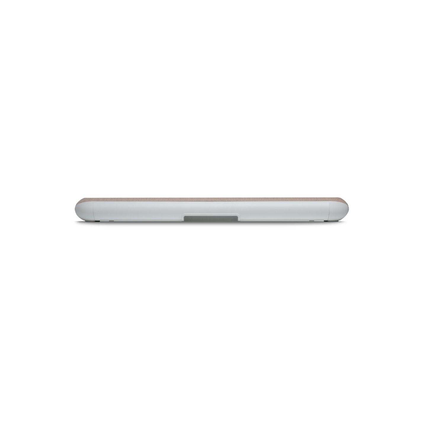 Equipado con 280 W de potencia total, ocho transductores y un DSP inteligente que detecta automáticamente su orientación (colocación en pared o sobre mueble) adaptando el sonido al entorno, este modelo no necesita un receptor AV independiente. Cuenta con entradas HDMI eARC, óptica y analógica, y permite expansión con subwoofer (cableado o inalámbrico) o con altavoces Bluesound para montar sistema envolvente completo. Su plataforma de streaming BluOS permite reproducir audio en alta resolución, agrupar zonas, y acceder a servicios como Spotify, Tidal, Qobuz, entre otros.