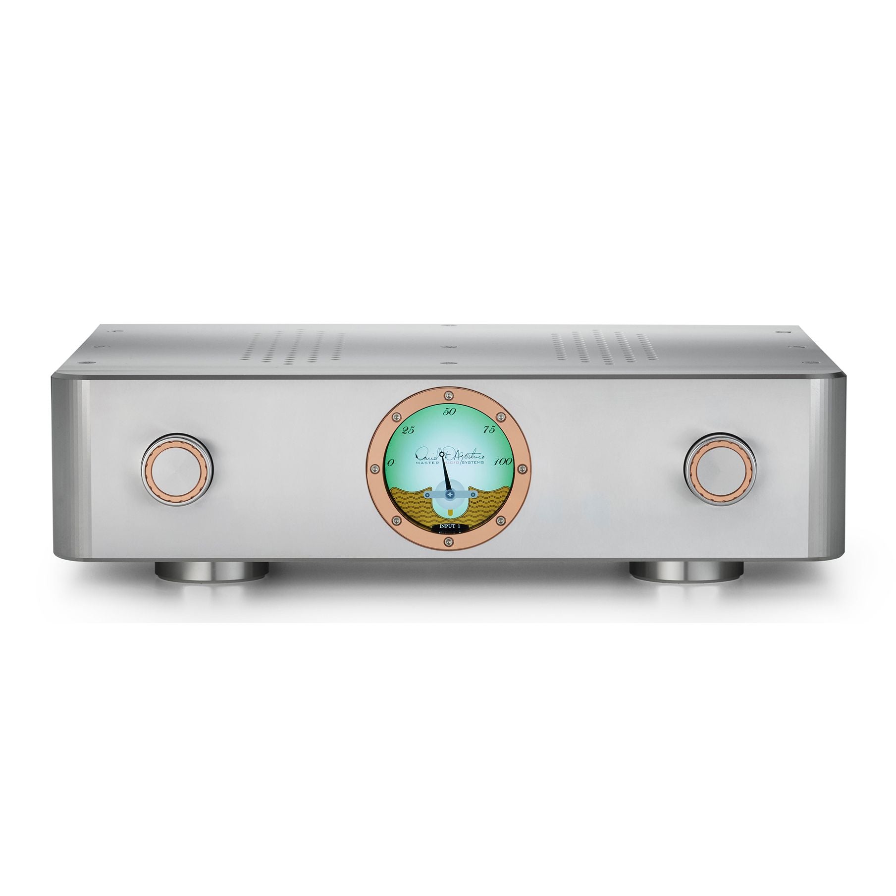 El Pendulum Integrated Amplifier se completa con un elegante mando a distancia por Bluetooth fabricado en Delrin y una construcción completamente metálica presidida por uno de los icónicos indicadores visualizadores analógicos de D’Agostino Master Audio Systems.