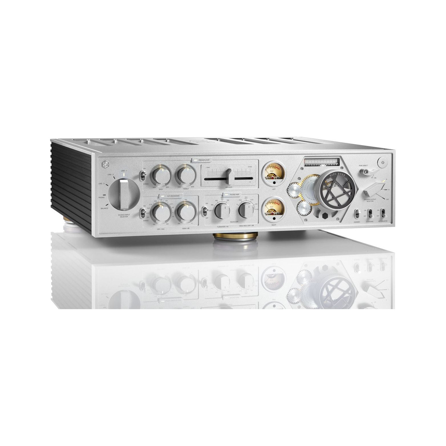 Así, el HiFi Rose está constituido por un total de cuatro módulos de amplificación monofónicos, con el fin de permitir tanto la biamplificación activa como BTL (“Bridge Tied Load”), siendo esta última un tipo de configuración en modo monofónico puenteado que permite multiplicar la potencia de salida.